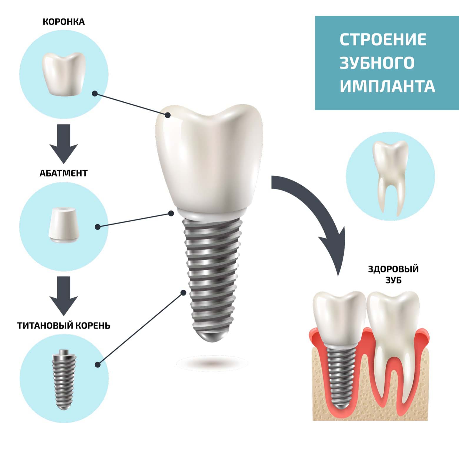 Имплантат — это искусственный корень зуба, изготовленный из титана, который устанавливается в челюстную кость на место утраченного зуба.